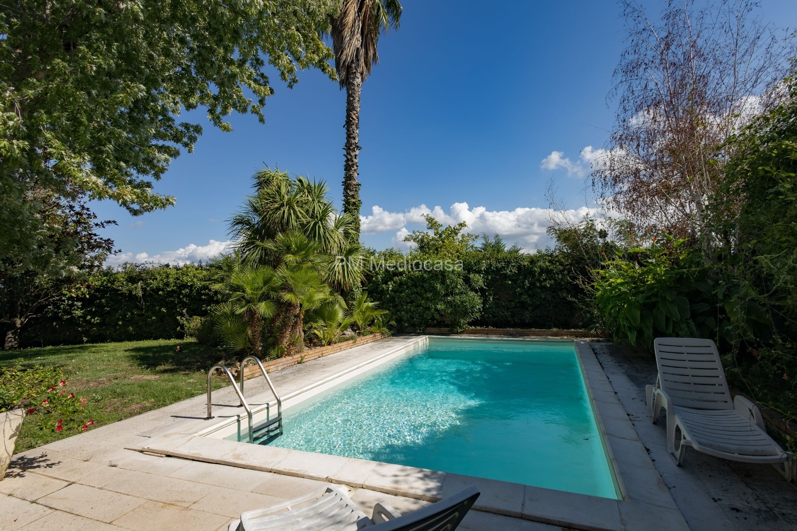 La villa ha un giardino di circa mq 2700 su vari livelli tutto recintato e pieno di varietà di piante, con bellissimo porticato ideale per pranzare all’aperto, zona barbecue, legnaia, ed una bellissima piscina come da foto.